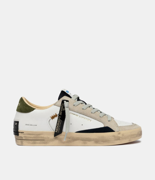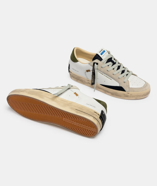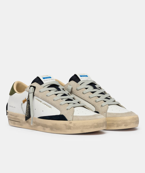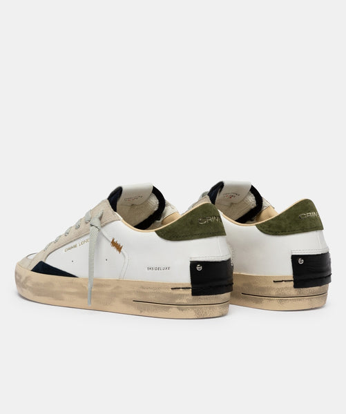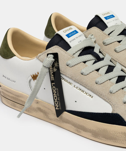 - Tomaia in pelle bianca, dettagli in suede blu notte