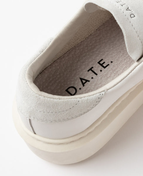 - Linguetta in pelle e camoscio con logo D.A.T.E. impresso.