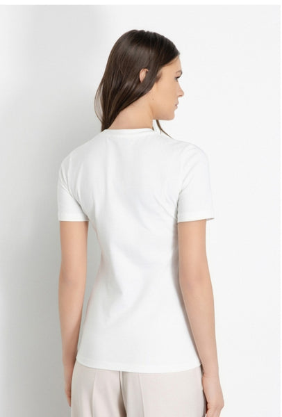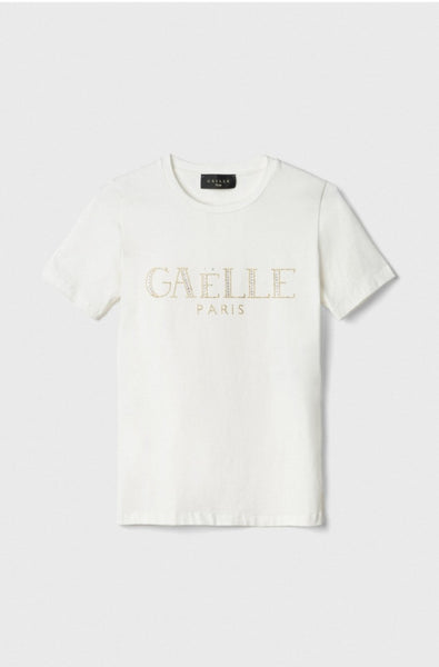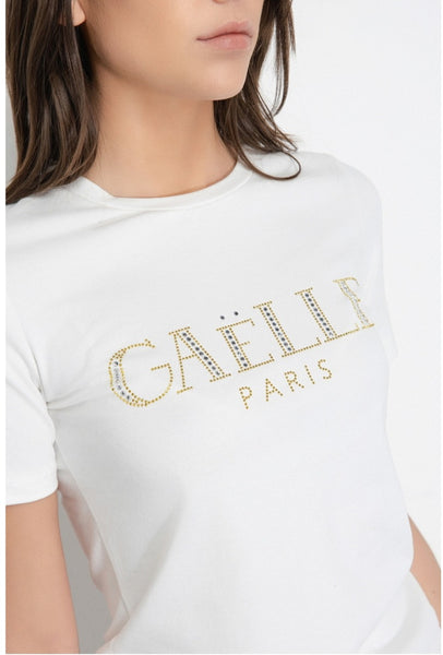 GAELLE PARIS T-Shirt Paricollo Mezza Manica Con Personalizzazione Strass /Borchie Termo • Off White - GAABW08300