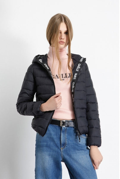 GAELLE PARIS Piumino Manica Lunga Con Cappuccio • Nero GAABW06501