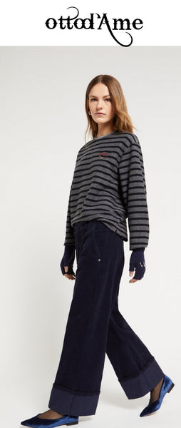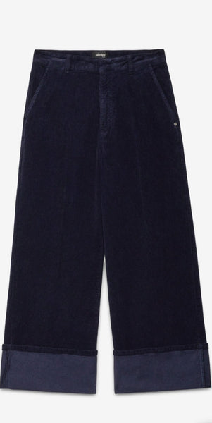 Jeans chino in velluto millerighe stretch con ampio risvolto.