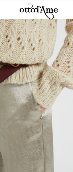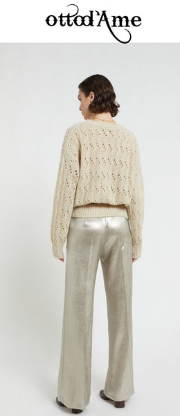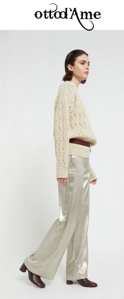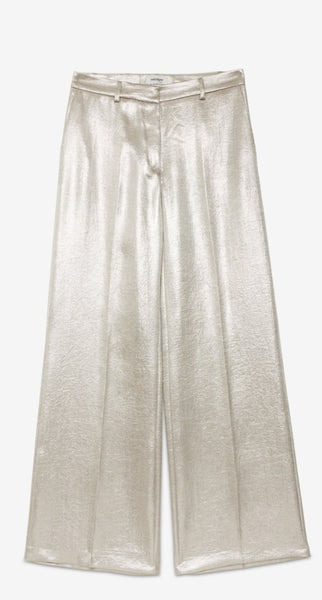 Pantalone palazzo in tessuto trilobato con effetto lucente e pinces.