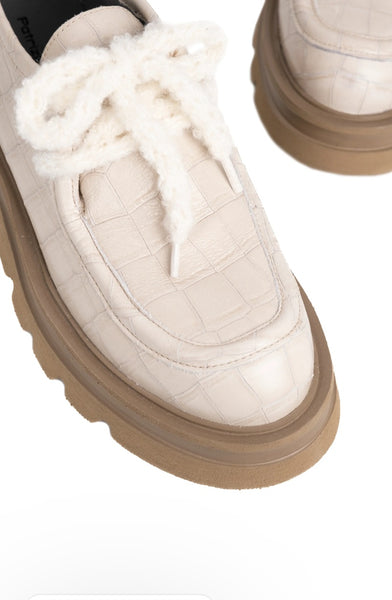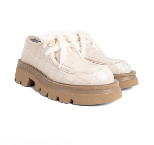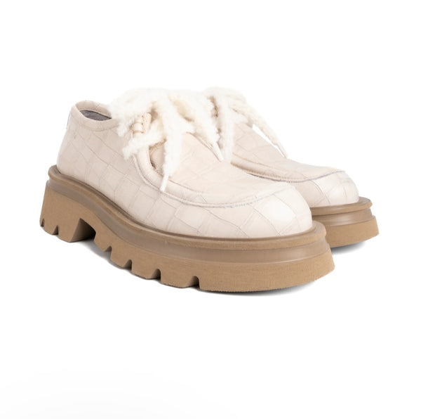 Scopri la scarpa allacciata Ingy, l'accessorio perfetto per chi desidera distinguersi con eleganza. Realizzata interamente in pregiata pelle COCCO NATURALE, questa calzatura in color crema esalta la qualità e la raffinatezza dei materiali italiani. La pelle COCCO NATURALE, con la sua superficie unica e naturale, dona alla scarpa un fascino senza tempo, rendendola ideale per accompagnarti in ogni momento della giornata con stile e comfort. La suola carro armato, robusta e di design esclusivo, completa questa creazione che unisce artigianalità e raffinatezza. La scarpa Ingy in pelle COCCO NATURALE è la scelta perfetta per chi cerca un look distintivo, sofisticato e di alta qualità