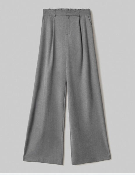 Pantalone Over In Twill Con Pences E Elastico Sul Dietro