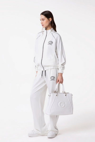 Felpa All Zip In Interlock Con Taglio Raglan E Aggiunta Di Piping Nero Ricamo Lato Cuore